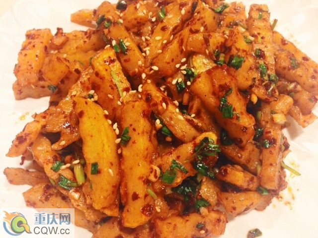 4.根據自己的口味把鹽、味精、花椒面、花椒油、五香粉、蔥姜蒜、折耳根等全部都放在洋芋上,拌勻即可食用