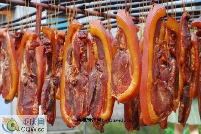 所謂的火炕臘肉,就是放在火炕上熏烤而成的臘肉。這種臘肉味道鮮美,易于保存。火炕臘肉是土家族的特色食品。人們每年宰年豬時,便將鮮肉放腌缸里腌制數天后取出來,再用柏香枝煙熏后,掛于火塘頂部的炕架上。