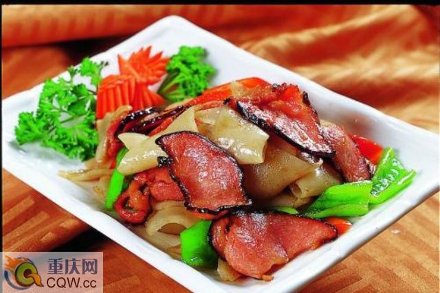 臘肉粉粑粑:先將洋芋去皮洗凈,把洋芋放在長方形蜂窩眼的背面用力上下滑動摩擦,在摩擦過程中偶爾加點水,這樣擦出來的洋芋粉易溶解于水中,慢慢沉淀于器皿底部。把菜油放入鍋中燒至六成熱左右,在淀粉里加入適量的雞蛋和水混合,慢慢倒入鍋中不停地攪伴,逐漸攤開成皮,皮的厚度一般應掌握在硬幣左右的厚度即可,將皮的兩面反復的進行煎炕,成型后出鍋切成方條形待用。將切好待用的臘肉片倒入鍋中翻炒,直至油水瀝出,肉片卷曲,準備少許蔥,生姜,食鹽和粉皮一起倒入翻炒,再放入青椒,炒至粉皮白中微黃,出鍋時放入蒜泥效果最佳。