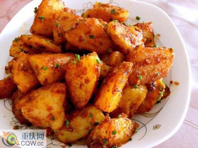 重慶各地都非常流行的接頭小吃:鍋巴土豆。做起來還真不難,先煮后煎,在鍋邊炕出焦脆硬皮的時候,撒上調(diào)料拌勻就可以吃了。