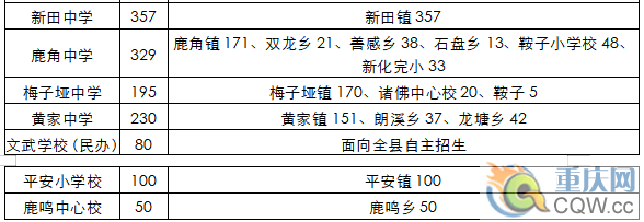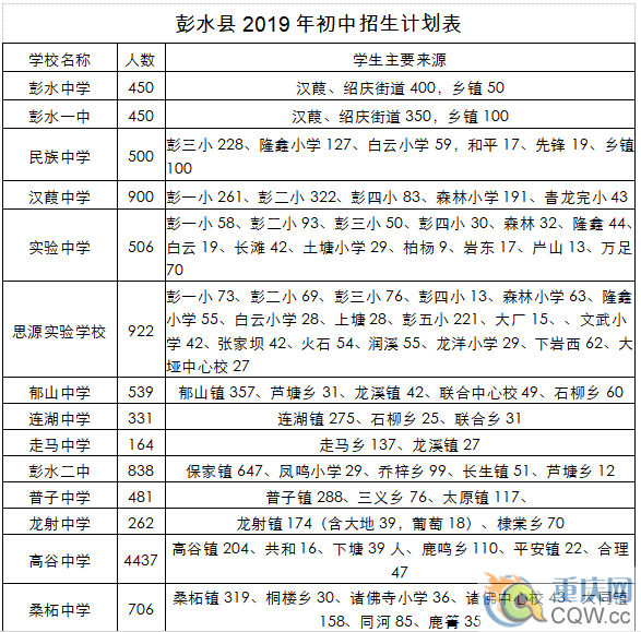 2.彭水縣2019年縣城中學多校劃片初中招生計劃分配表