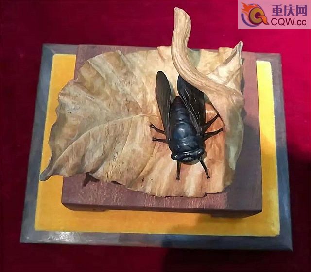 在他的工作室內,放著100多種刻刀!斑@些刻刀,都有不同的用處。”陳世通說,有時他還會根據木雕作品的需要,臨時制作雕刻工具。30年來,他一直堅守著木雕手藝。在他工作室里,擺放了很多木雕作品,特別是蟬和螳螂等系列,惟妙惟肖,栩栩如生,如果不仔細看,還真以為是實物。