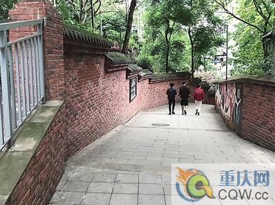 山城第八步道不足千米,但是步道打通了去大禮堂、棗子嵐埡、兒童醫(yī)院的便捷通道。走完山城第八步道,經(jīng)過(guò)一段市政道路便進(jìn)入文化宮巷。文化宮巷的整體風(fēng)貌和山城第八步道一致,該步道起于中山二路兒童醫(yī)院門(mén)診部,止于學(xué)田灣。和山城第八步道部分穿過(guò)居民區(qū)相比,文化宮巷更袖珍,更緊致,步道兩側(cè)都是紅色高墻,粗壯的黃葛樹(shù)從兩側(cè)墻根生長(zhǎng)出來(lái),初夏時(shí)節(jié),嫩綠的樹(shù)葉讓人心曠神怡。