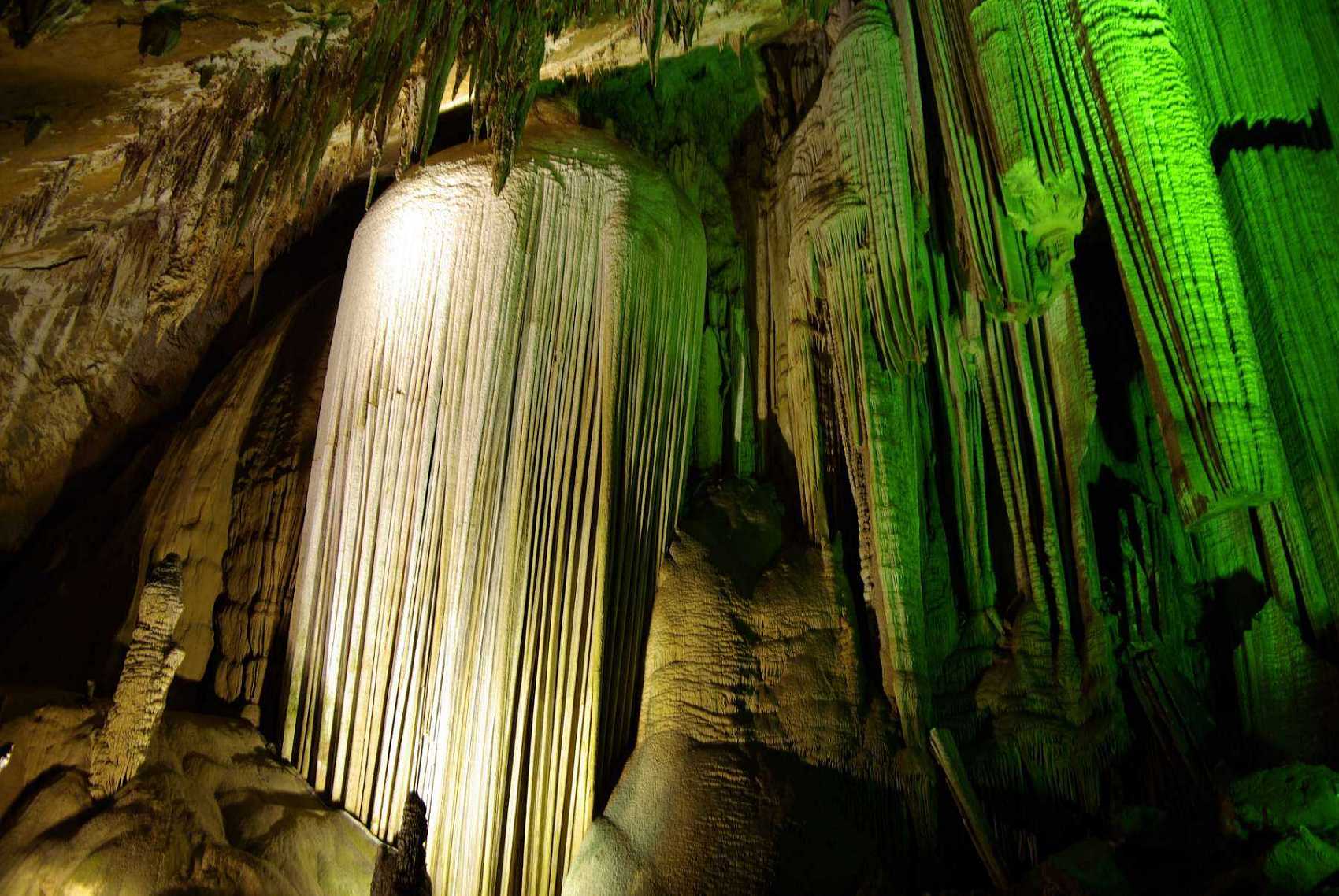 坐火車到達武隆差不多已經快十一點了,包了部出租車,先去芙蓉洞,這里的導游是不要另外付錢的,因為進洞必須要跟著導游走,不然洞里太大,容易走失,由于不是旺季,我們在洞口等了二十分鐘才湊足了二十個人,在等待的時間里,我們很幸運的看到了有人坐著吊索滑過的芙蓉江,這是一個很刺激的項目,從芙蓉洞這邊的山頭一直劃江而過,到達隔江的對面山頭,然后再劃回來,寬闊碧綠的江水就在吊索下幾十米的地方,我們考慮了半天,沒有膽子嘗試,最后作罷了。二十分鐘過去,終于可以進洞了,洞里很暖和,才走了沒多會就大汗淋漓,所以建議進洞的時候少穿些衣服,不然太熱了。芙蓉洞在《中國國家地理》的中國名洞排名第二,僅次于貴州的織金洞,而且由于保護的比較好,所以基本上沒有發生石頭老化發黑的情況,洞里非常壯觀,萬劍掛壁,生命起源,珊瑚瑤池,萬丈飛瀑都讓人嘆為觀止。整個洞走一圈,差不多要一個多小時,洞里有許多景都是值得一拍的,不過如果要拍照的話,請千萬記得帶好三角架,不然光線不足,非常容易抖掉。