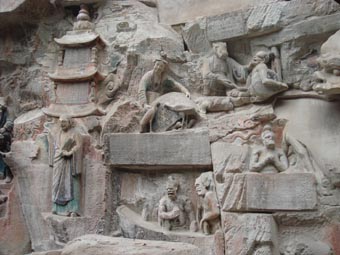 門口買張寶頂山和北山的聯票省20元(寶頂80,北山60,聯票120),將近11點進入大佛灣(現在用數碼了,有個好處是不用計時,需要時一看第一張照片,就能估個八九不離十),從“香焚寶鼎”和“寶頂”、“福壽”的摩崖起跟眾人反向而行。都說大足石刻與龍門、云崗、麥積山并稱四大石窟,它是最晚的一個,所以佛及佛的信仰都更加中國化,看懂造像的風格需要認識能力,但貼近生活的人物形象很容易讓人感到平易親切,可能對于雕塑工匠來說也有同感吧,那一尊尊盡情發揮的造像,絕不是亦步亦趨模仿的,而是了然于心,任意放手而為。