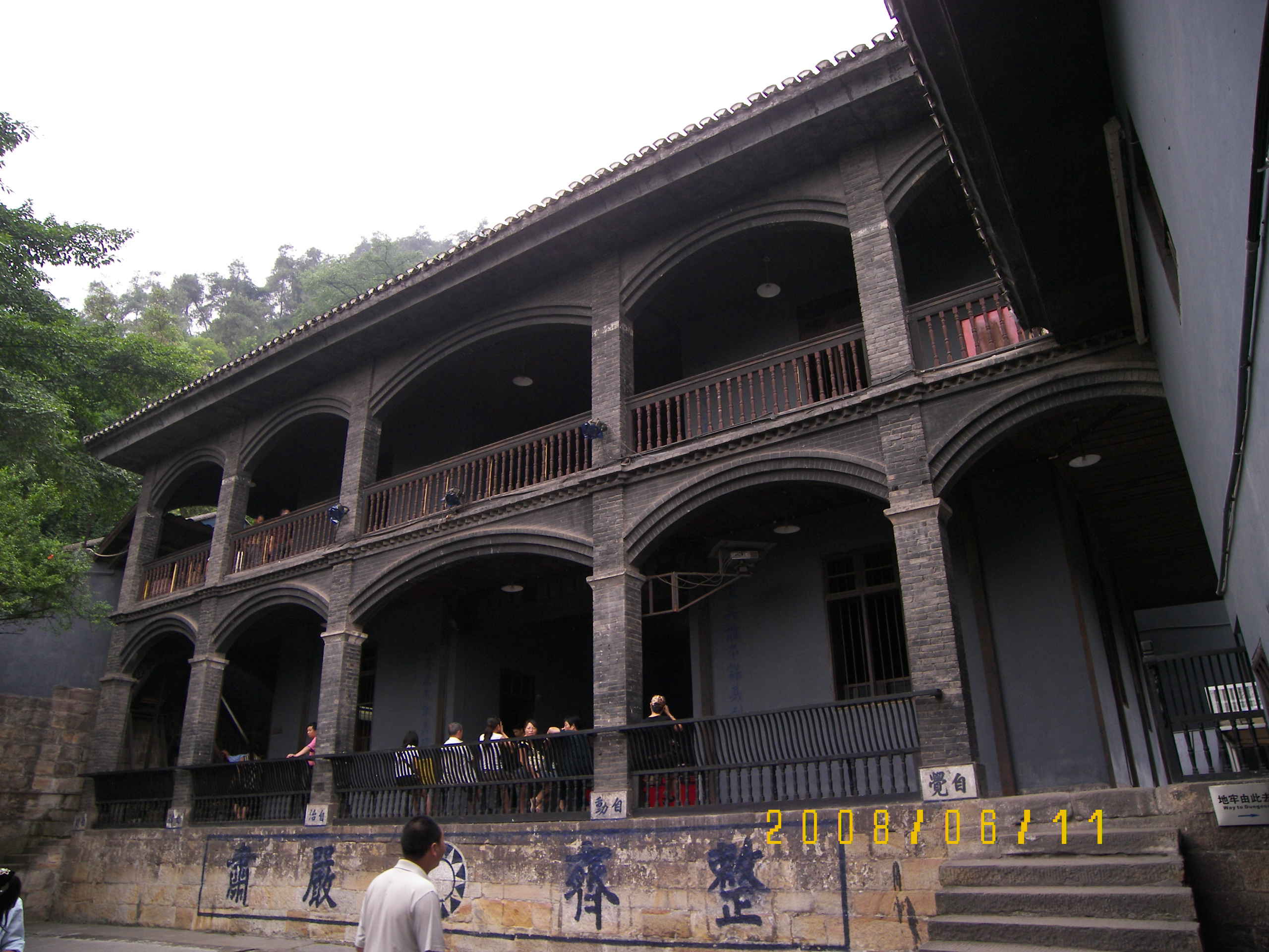 10:55到烈士墓站,轉210路去白公館,這里提一下,我這部215沒有報站,大家記一下前后站名,錯過一站還是有點路的,呵呵.210等了一小會兒,到白公館下車已是11:13了,進口就在下車的地方,爬幾段臺階上去,環境真不錯,有山有水,此處原名"香山別墅",后1938年,軍統局用30兩黃金將其買下。1939年軍統將其改為軍統局本部直屬看守所,稱軍統重慶看守所,主要關押國民黨政府認為級別較高的政治犯。1943年中美合作所成立后,白公館內犯人被遷移至渣滓洞 。白公館改名為中美合作所第三招待所,供美方人員居住。第二次世界大戰 結束后,中美合作所 撤銷,美方人員回國,白公館才又恢復為看守所。并且軍統將西南的軍統集中營,息烽監獄、望龍門看守所、渣滓洞看守所合并,成立了白公館看守所,后稱國防部保密局看守所.進去轉了轉,地方不是很大, 墻上還寫了“進思進忠、退思補過”、“正其宜不計其利,明其道不計其功”等標語,咱們共產黨人可不是軟骨頭哦,還有小蘿卜頭的雕像,現在將樓上樓下的牢房改為展覽室,各種內容蠻多的.這里和渣滓洞并稱為關押、迫害、屠殺革命志士的“兩口活棺材”。