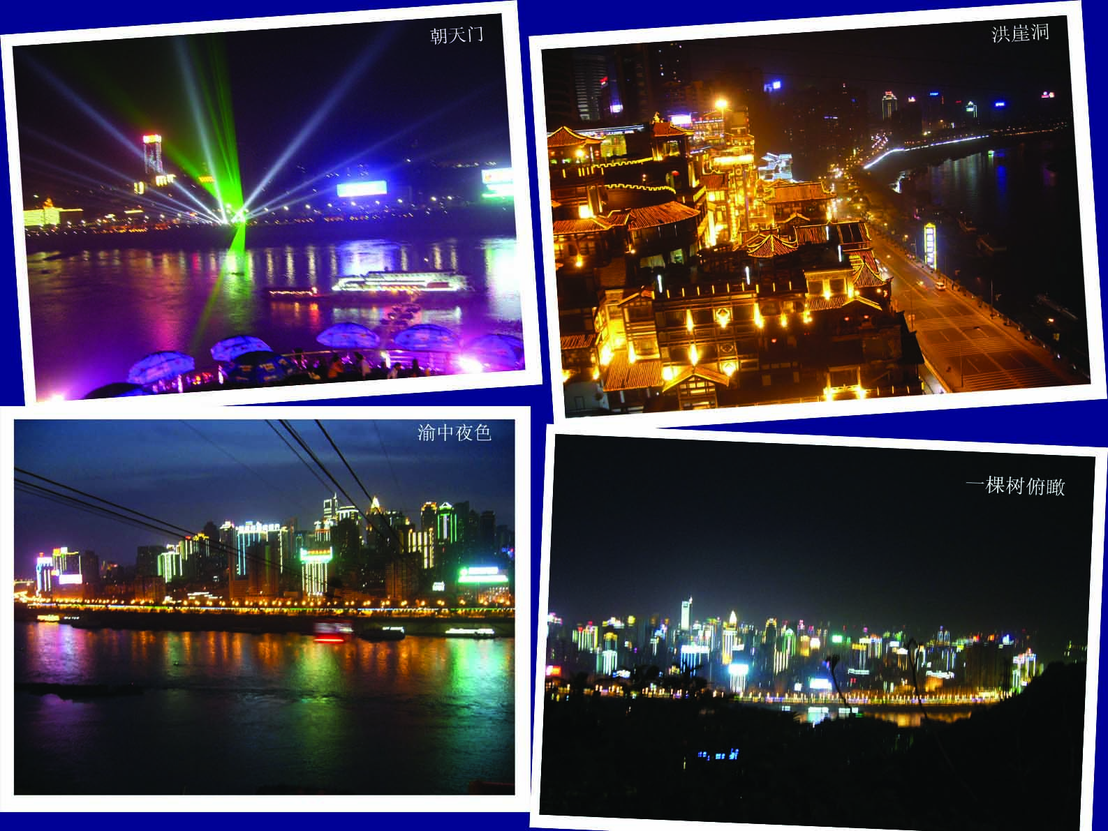 在景區外午餐后坐公交直達舊汽車站,坐長途班車回重慶菜園壩,車票39元/人,約2.5小時。在車站,老婆的老同學小饒來接我們,去預定的莫泰酒店check-in。順便乘坐了輕軌瀏覽山城,步行經過熱鬧繁華的解放碑商圈。重慶果然是火爐,下午五點仍然艷陽高照,一身短袖也忍不住冒汗。莫泰一面對著嘉陵江,抬頭可見過江纜車站。旁邊就是傳說中的洪崖洞。我們倆、小饒和女友小譚,四人一起去找好吃的。洪崖洞其實是一片很大的建筑群,內部囊括了吃喝玩樂,街邊的入口是處于十一樓,可坐電梯一路向下,底樓是江邊的濱江美食街,江風徐來,擺上個干鍋,再擺上個龍門陣。飯后幫助消化,步行去朝天門看夜景。其實不遠,但是道路上坡下坡的有點費勁。朝天門廣場是當地居民晚上聚集消遣、乘涼的地方,造型是一艘巨型的船,船頭直插水中,是長江和嘉陵江交匯之處,站在“船頭”,南岸與北岸的夜景可以盡收眼底,江面上各式繽紛的游覽船來去交織。夜晚洪崖洞的燈火也很燦爛。