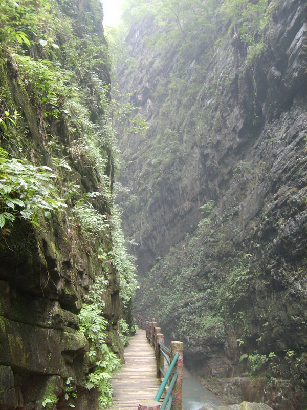 整個上峽都是在溪水邊穿行,美不勝收.中/下峽前有燒烤,應該不錯,一般走到這里也差不多快吃飯了,可以好好補充一下,之后開始中下峽之旅.中下峽基本上是在澗水上方的棧道上.由于巖石滴水,很濕滑,去的朋友一定要注意,鞋一定要輕巧防滑的.還有,棧道好多地方很窄,我這樣的很不容易過,體重過二百斤的朋友最好不要去,,呵呵.