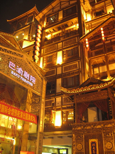 春秋公司的航班下午兩點準時降落重慶江北機場,出門坐上機場大巴,路上印象全無,到處是成片的漂亮樓宇,密集聳立。總算認出了03年出差時住的五洲大酒店,到了上清寺下車,對面就有賣火車票的,買了明天一早去成都的票,接著在路邊站了半天也沒出租車,只能坐了輛摩托很拉風地到了洪崖洞。