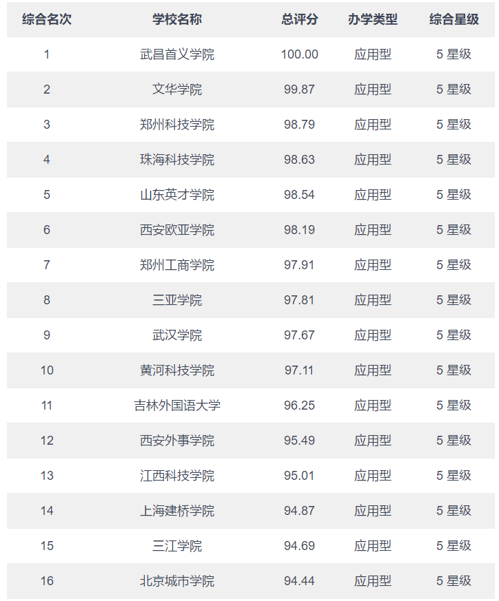 高校智庫發布2021全國民辦大學排名 時間:2021-06-10 來源:重慶網 作者:cqw.cc 我要糾錯 高校智庫2021全國民辦大學綜合實力排名100強近日公布。 在本年度全國民辦高校排名中,武昌首義學院名列第一;文華學院以99.87分名列第二;鄭州科技學院以98.79分名列第三;珠海科技學院以98.63分名列第四;山東英才學院以98.54分名列第五。 標簽: