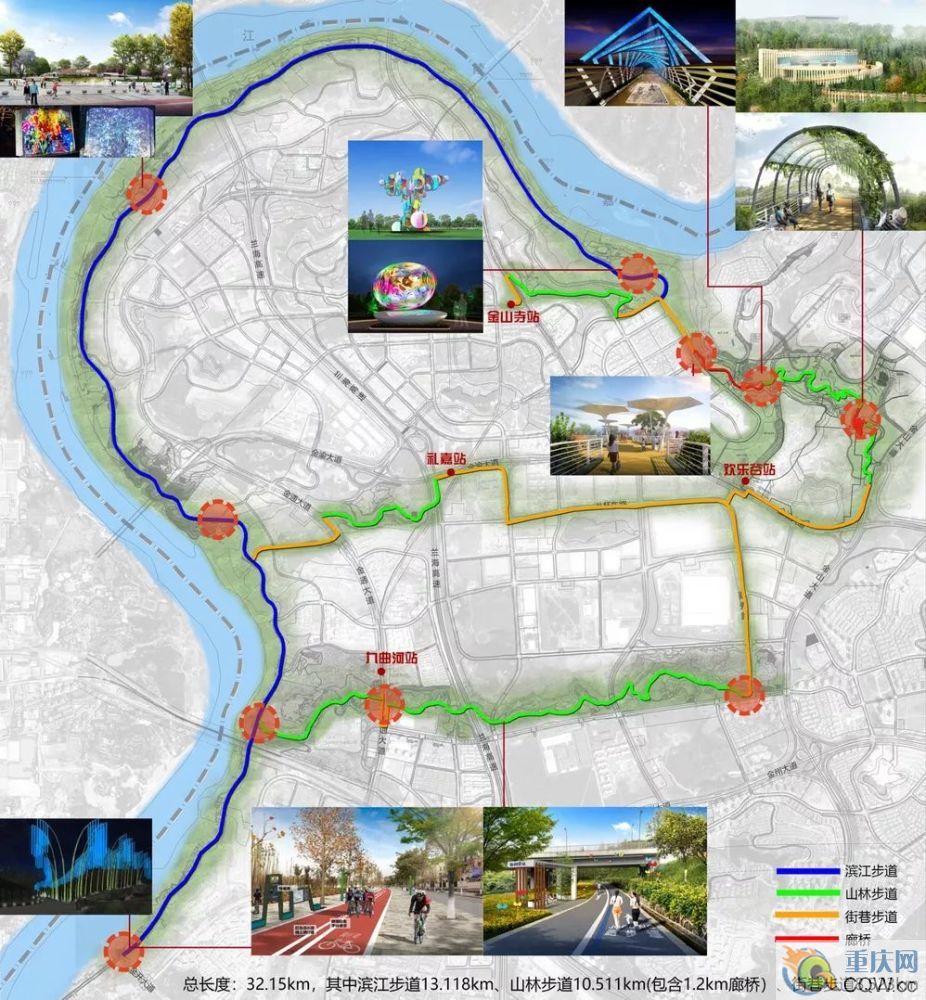 “我們以打造重慶特色步行系統(tǒng)為總目標(biāo),彰顯山水特色最突出的步道,使其成為宜行、宜游、宜賞的山城步道。”兩江新區(qū)市政管護(hù)中心設(shè)施科科長陳強(qiáng)介紹,一期工程將全線修建無障礙智能健身道,打造4D立體魔幻城市廊橋,讓市民感受智能服務(wù)體驗(yàn),提供智能康體健身、親子活動、城市觀光、賽事及公益活動等功能。