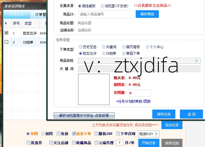 全自動(dòng)開(kāi)團(tuán):支持搜索、多多進(jìn)寶、萬(wàn)人團(tuán)等12種入口批量生成訂單
