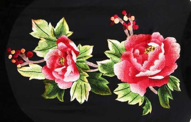 是用絲線繡制的手工品,具有配色大膽、對比強烈、樸實無華等特點,主要產(chǎn)品有繡花鞋、手帕、胸花、枕套、童帽、荷包等。